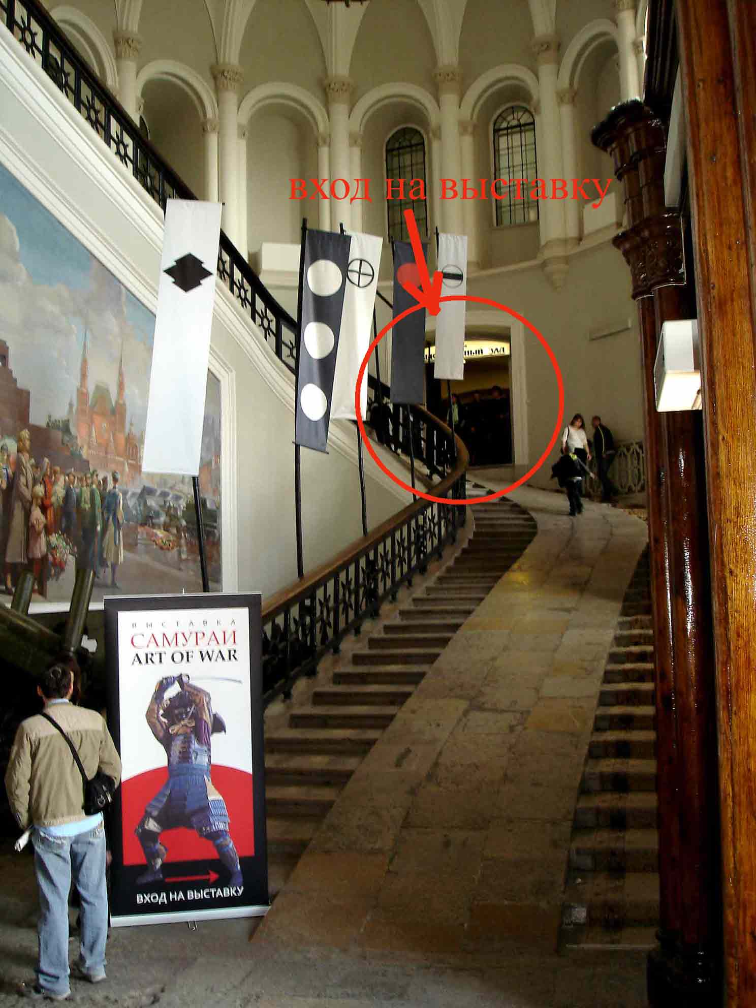 Клоунская какая одежда ... да и вообще, японцы - это такие маленькие смешные косоглазые карлики ... как сказал один из американских солдат, вернувшийся домой из оккупационных частей. Ну это так, к слову, не для дискуссий. По делу: я правильно понял, что выставка проходила не в том большом зале, который вверх по этой лестнице и сразу посередине пролета вход? Его дверь еще видна снизу. Там всякие пафосные выставки проходят, типа про Калашникова и т.п.? А на фото я вижу маленькие сводчатые зальчики, это т.е. еще повыше по лестнице? Какая там на вскидку площадь и сколько таких зальчиков? И на входе там стояла своя отдельная касса, правильно я понял? Это я не из праздного любопытства, просто давно подумываю об организации там выставки типа той, что мы организовывали в Этнографии, только по армейским ножам и кинжалам с привлечением частных коллекций, вот и прикидываю, какие у них там есть залы. Где Дима Федурин свое выставлял я знаю, побывал, там на втором этаже из коридора вход в небольшой зальчик, но там нет сводов и площадь метров 20, т.е. мало. Хорошо, что разрешили отдельную кассу поставить, а то непонятно, как деньги из музея изымать, если касса будет общая. Любопытно, касса была музея или организаторов, непонятно было? В общем, если кто еще пойдет и будет не лень, задайте пару вопросов, пожалуйста, например, чья касса, чьи стенды -музея или организаторов, чья охрана и т.д. Торговали там проспектами или нет? А то я не пойду, мне Япония перпендикулярно.