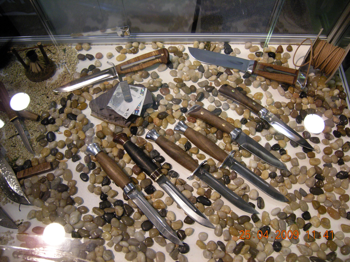 Действительно боевые ножи демонстрировались автором в более неформальной обстановке :) Под пиво :D