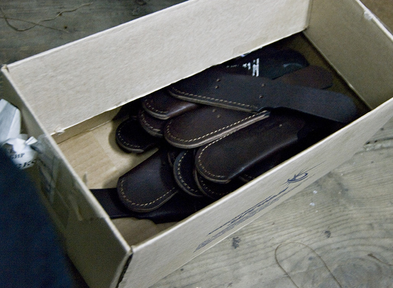 Между основной фотосъемкой и вечерним отдыхом на берегу Оки, нам показали помещение (очень, кстати, небольшое), в котором до недавнего времени размещалась вся мастерская. В настоящее время там производятся ножны для ножей.