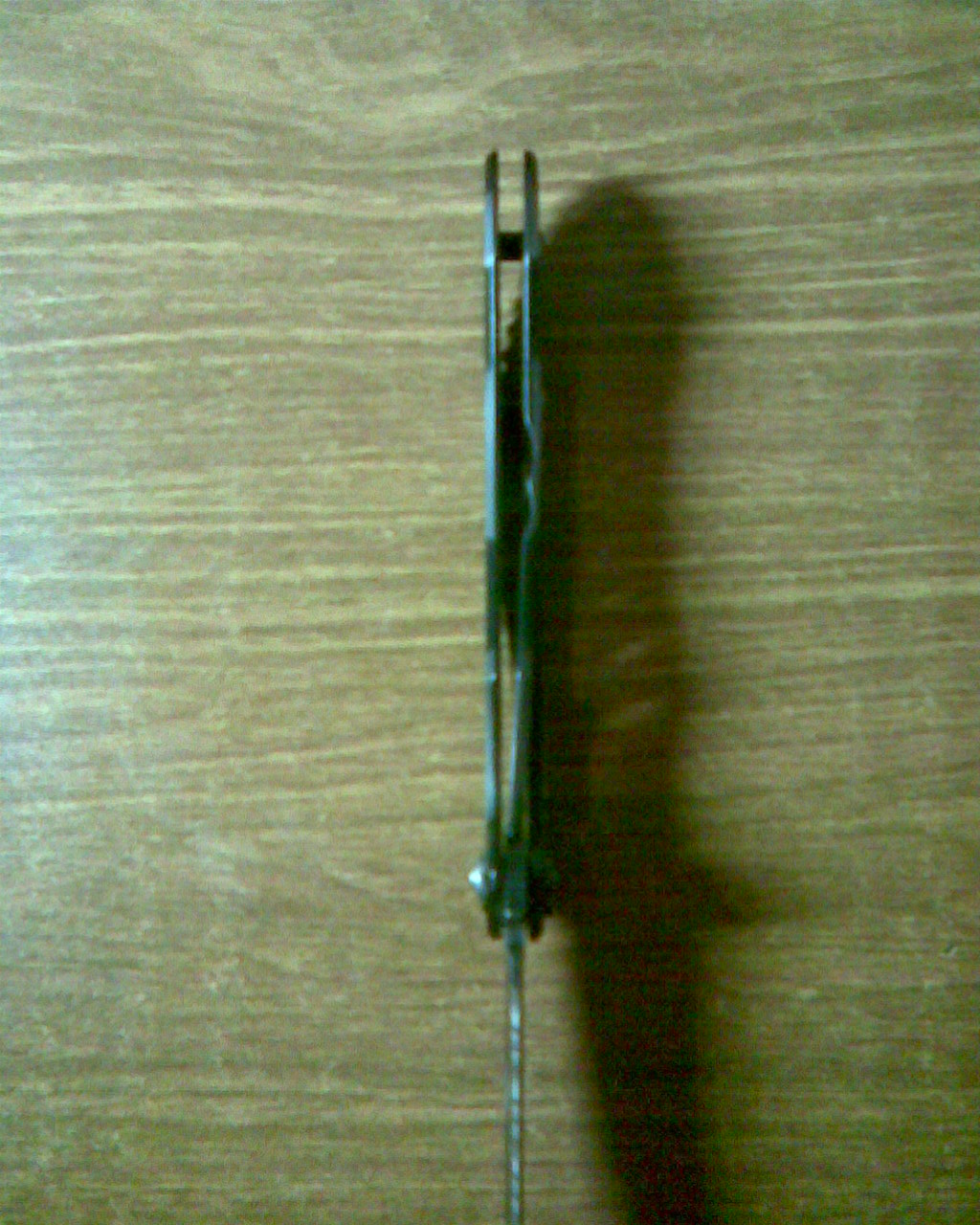 У основания клинка имеется маленькое (практически «точечное») углубление, назначение которого я понял не совсем сразу. Оказалось, что оно служит для удержания клинка в закрытом состоянии, то есть на «лайнере» есть маленькая «выпуклость», которая в закрытом состоянии попадает в это углубление и препятствует «выпаданию» клинка (правда ещё она рисует круглую царапину у основания клинка, но это ерунда). Может это широко распространено, но я вижу подобное впервые.