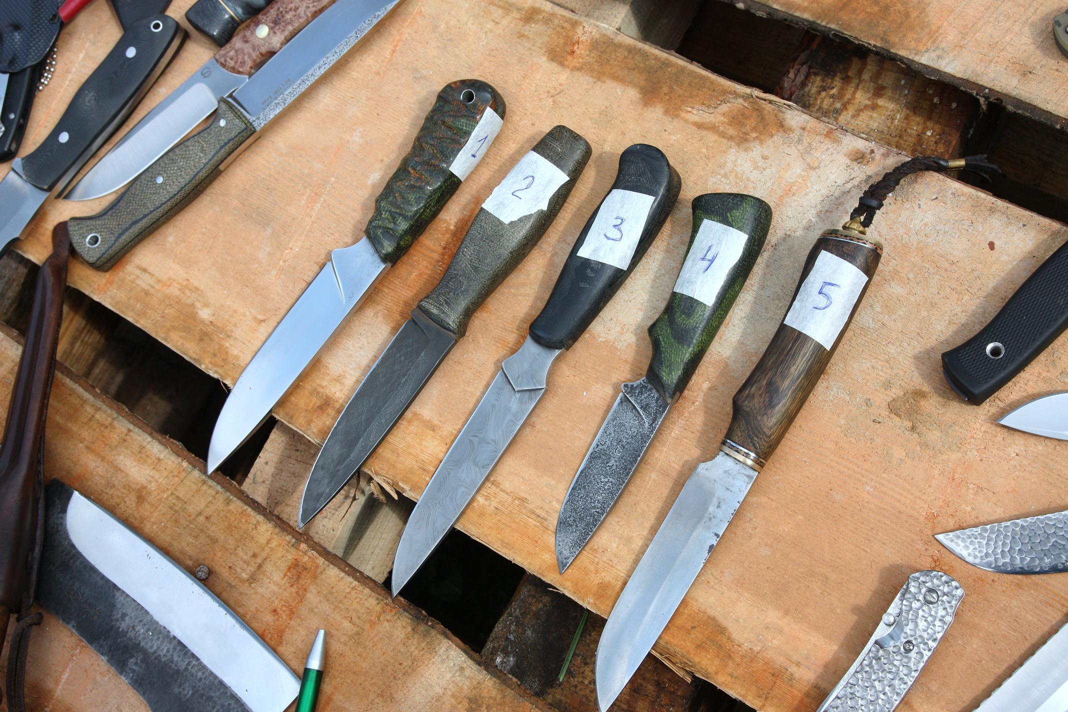 Несчитая эталонного ножа, в основном забеге, участвовали 5 ножей, которые вы видите на картинке.