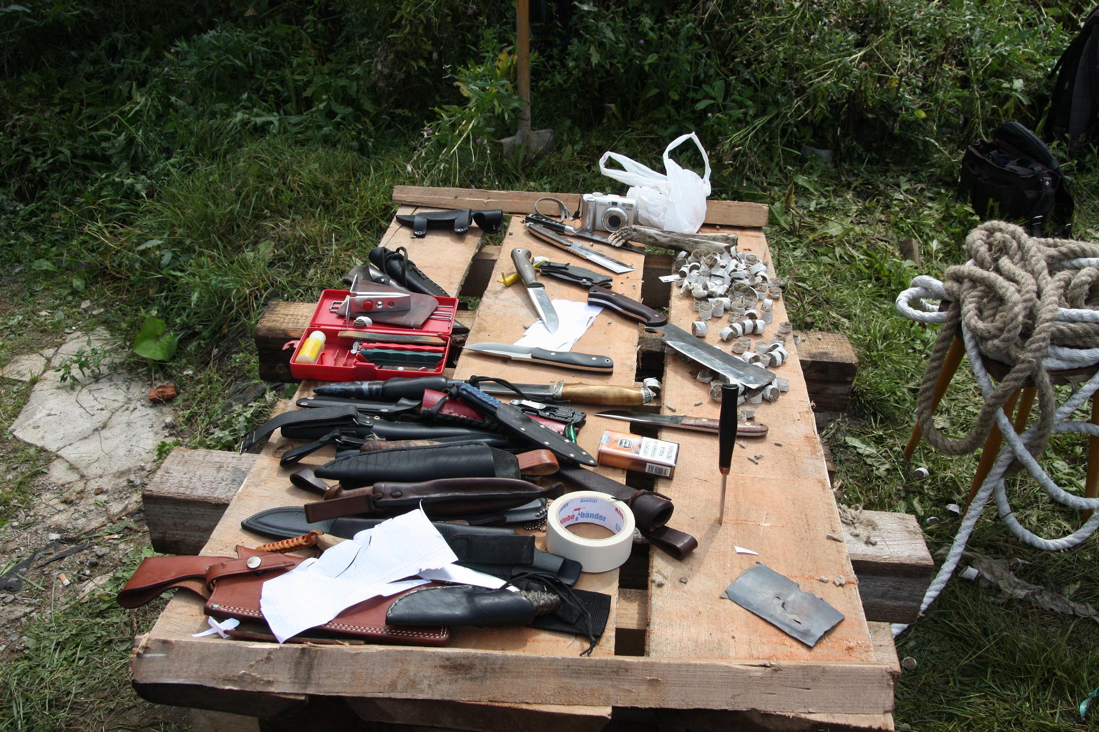 1.канатные тесты -(1 тестирующий на всех образцах) канат - пеньковый 20мм Ножи зазаточены.