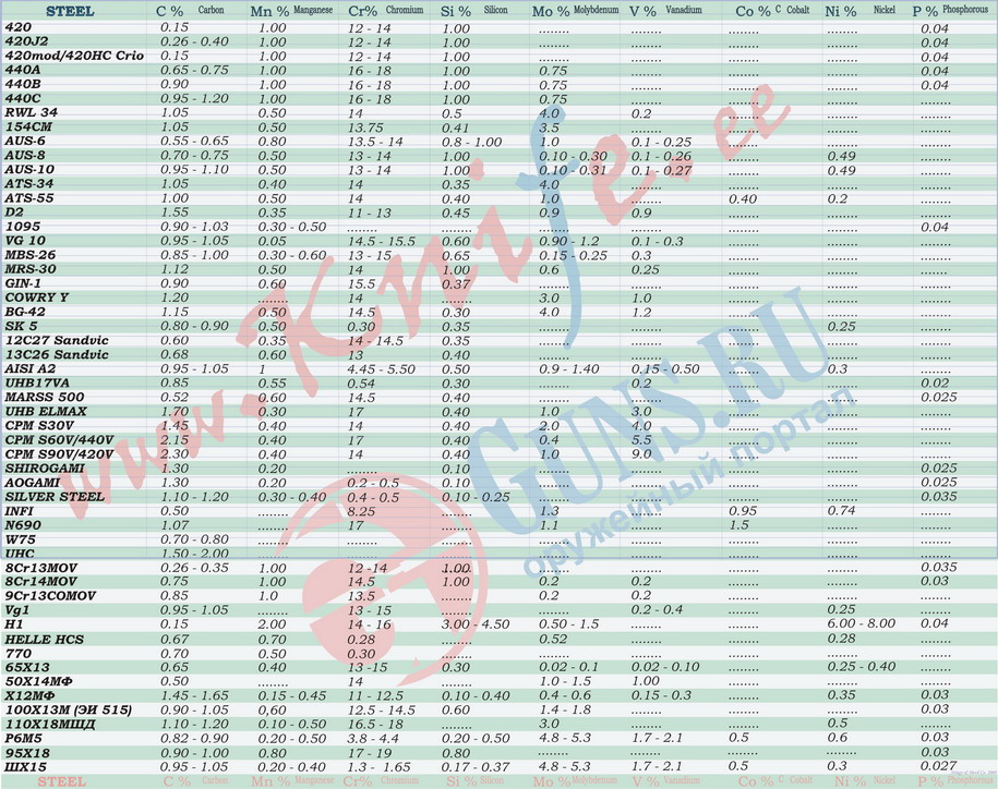 В переводе на человечий язык AUS 6 значит, что в стали где-то примерно около 0.6% углерода :) 65х13 значит, что в идеале 0.65% С + в районе 13% хрома :D Они реально ближе, тем более, что, согласно твоей же таблице, аус 8 имеет в своем составе осмысленную долю молибдена :)