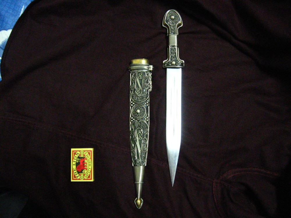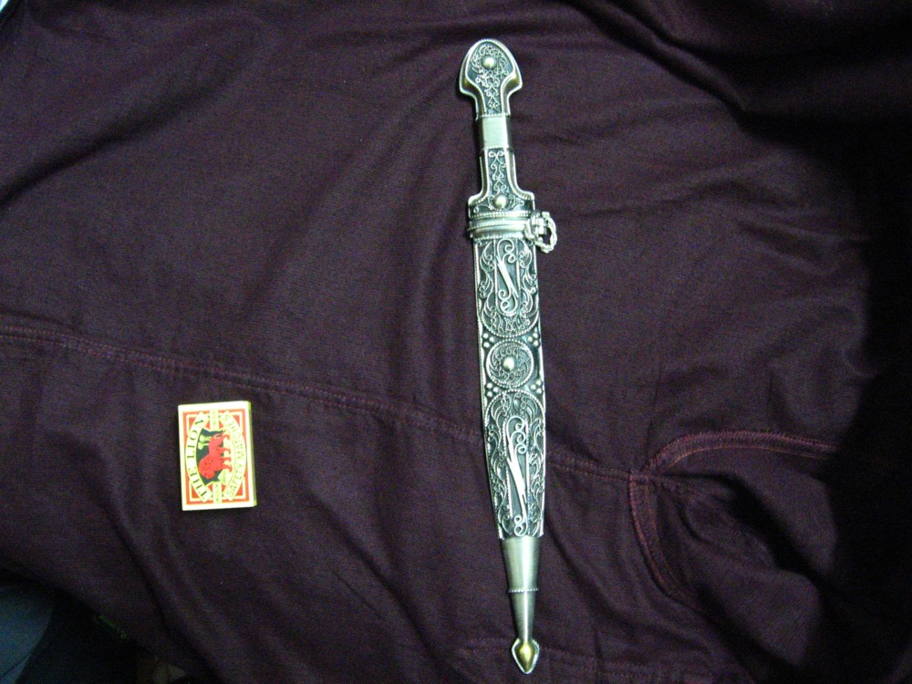 оч похож на продающиеся у нас сувенирные кинжалы... Клинок - одно название.. И рукоятка кинжала длиной от пояса до колена еле помещается в моей достаточно небольшой кисти..