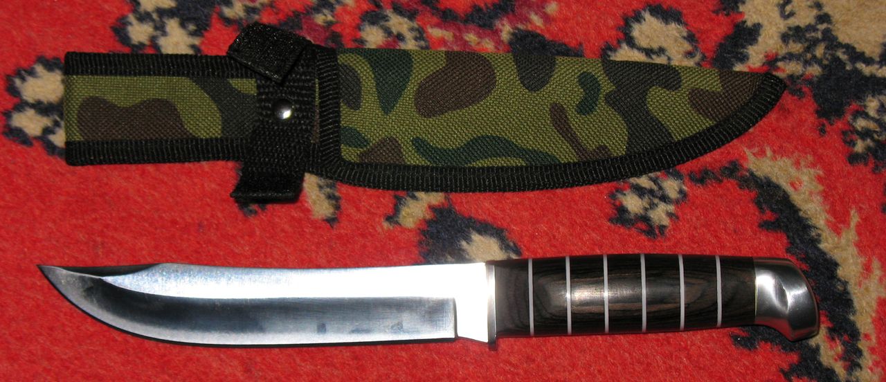 вобщем, купил сегодня этот нож, в принципе понравился, выглядит неплохо, хотя гарду бы подлиннее немного (рука соскальзывает на лезвие) и рукоять не такую скользкую, и было бы отлично :) заточен тоже очень хорошо, режет бумагу на весу, карандаш уже заточил с полпня, продукты тоже неплохо. но для хлеба толстовато лезвие (около 3 мм обух).