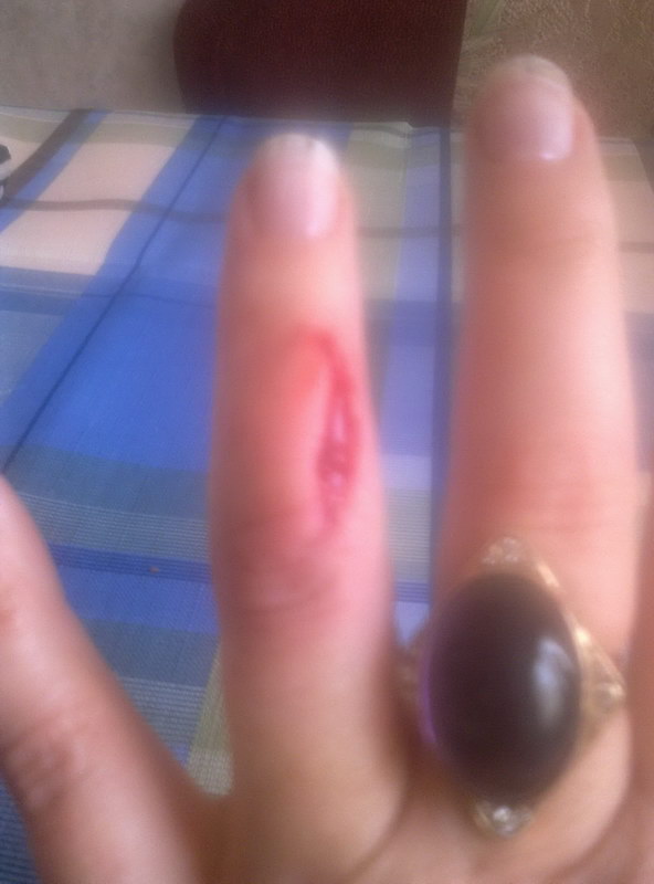 Я так понял что кончик ножа пропорол палец. Ничаво! Заживет как на со@аке.