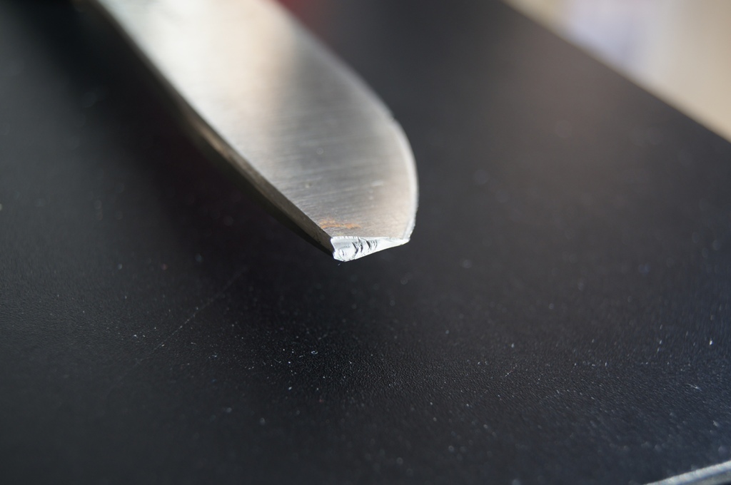 5.3 По правке - изначально на ноже была линза, которую, похоже переточили... На Ди-90 это не самое легкое дело. На тестах у В. Кузнецова, нож после 700 резов был приведен в состояние "бреет со свистом" примерно за 40-50 движений по керамике УЛЬТРАФАЙН.