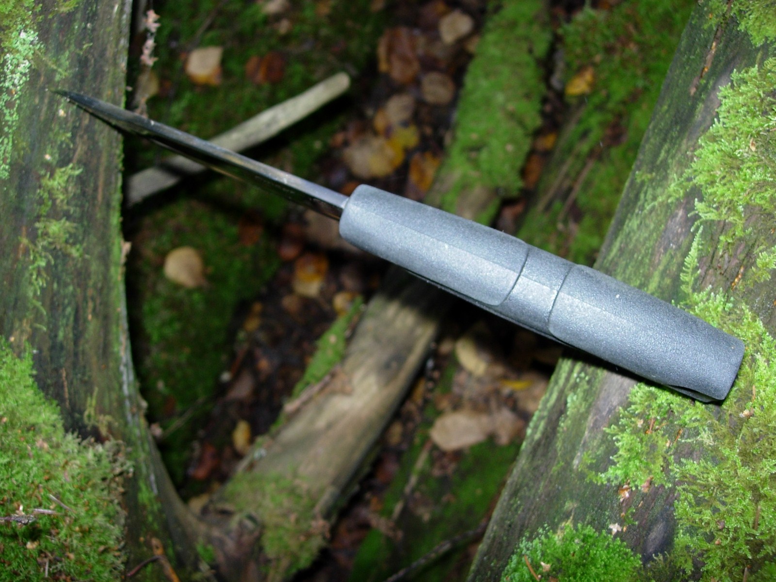 Рукоять сделана на отлично, но и её я буду дорабатывать (ребро под указательным пальцем наминает при долгой силовой работе - это я по <Стерх-2> еще помню, рукояти у них идентичные). А вот с РК не так все гладко, по основной части клинка заточка симметрична, но ближе к кончику ножа примерно на протяжении 2-3 см идет перекос заточки (лечится как вы поняли переточкой).