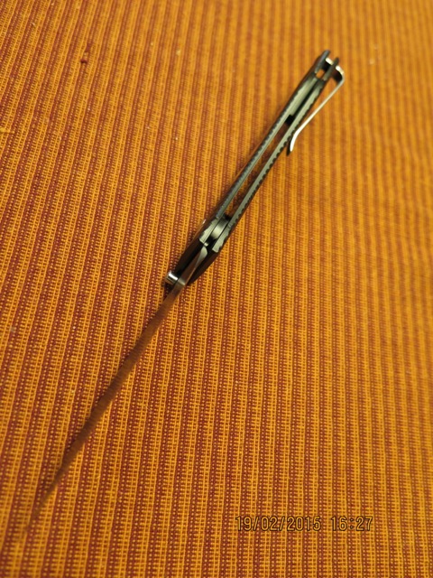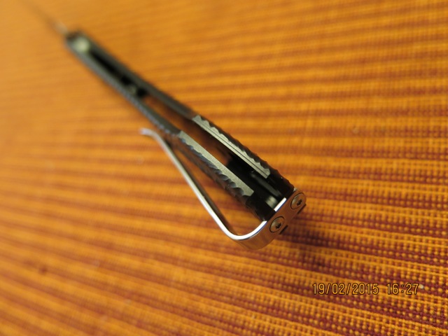 Клинок 87мм, по РК 76мм, спуски вогнутые, сведение 0,3мм, толщина в обухе 2,5мм, заточка 25 град на одну сторону.