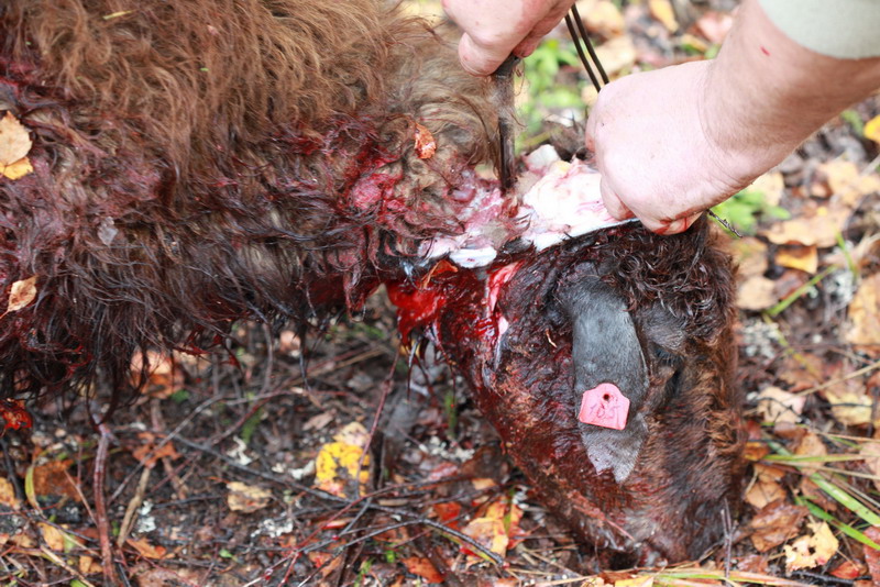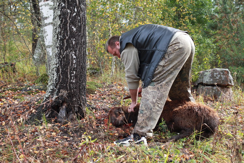 В роли убитого животного выступал курдючный барашек, которого забил и разделал очень опытный охотник, знаток леса и мастер разделки Дмитрий.