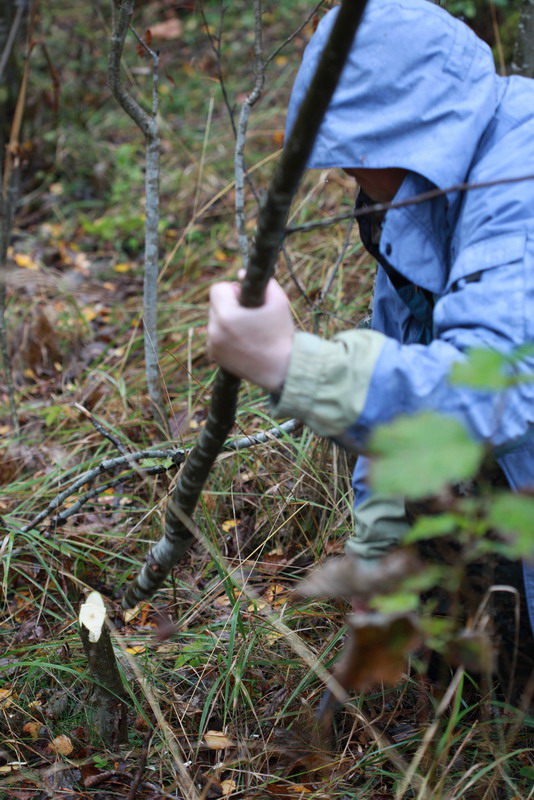 После того, как вынули внутренности и отделили конечности от туши. Настало время серьезного испытания для ножа. Надо было срезать ребра с позвоночника. Делается это очень просто — левой рукой хватаемся за сами ребра, оттягиваем их чуть в сторону, в это же время правой рукой, резким движением от себя вниз, разрезаем ребра ножом. Рокстедом это делать было не удобно. И причин тут много: