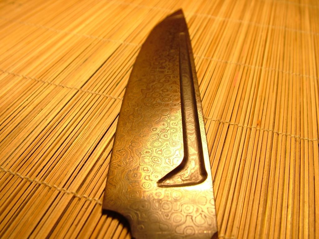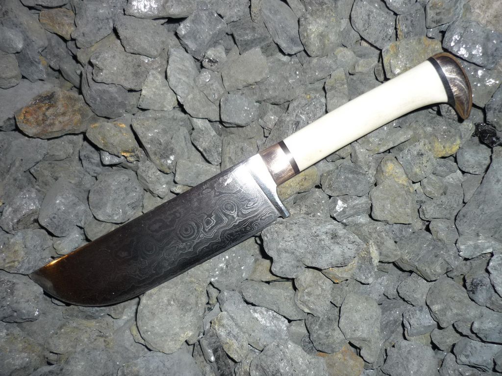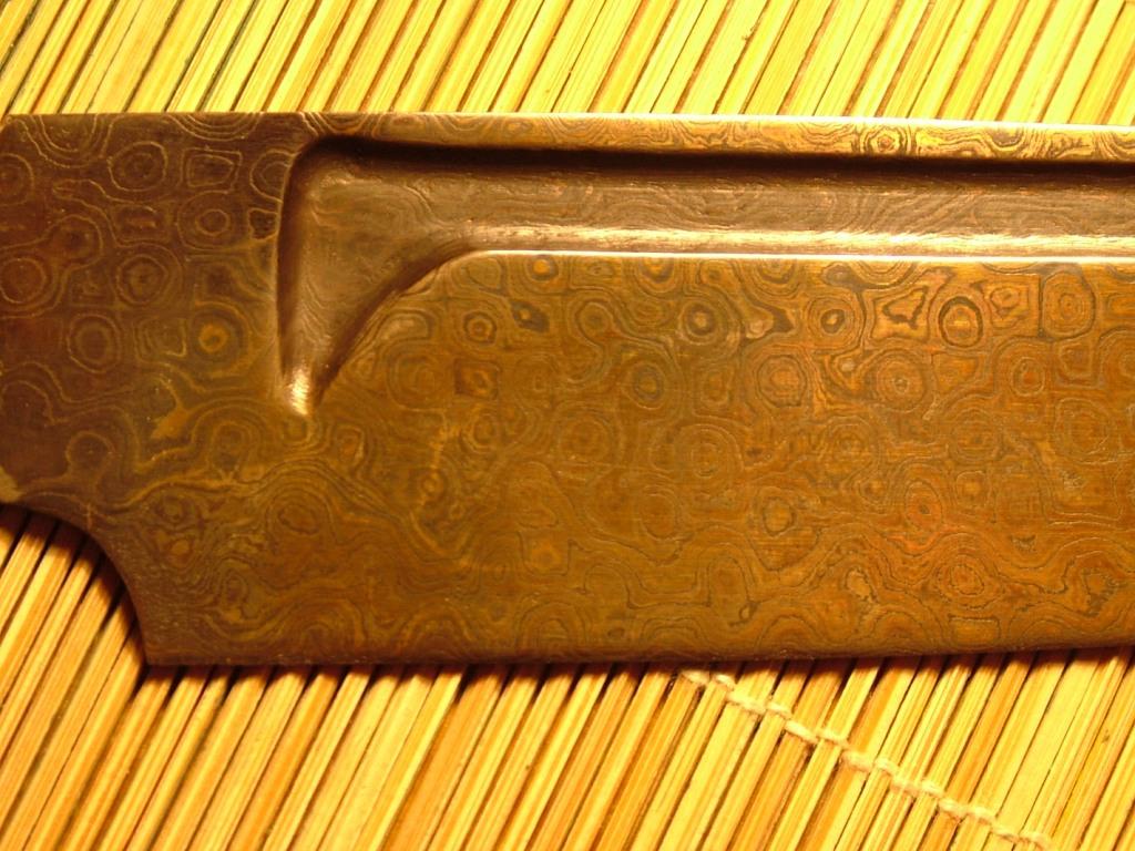 Про качество дамаска ничего сказать не могу,но с рукоятями у вас пока совсем не получается.