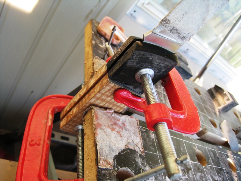 Начал больстер юзать. На камне и в правду беда, на ленте ближе к делу. Вечерком перейду на ручной инструмент (жара спадет). Производительность труда упала до 2х часов в неделю. :mrgreen: Думаю куда четыре трубы к ножу приделать :mrgreen:
