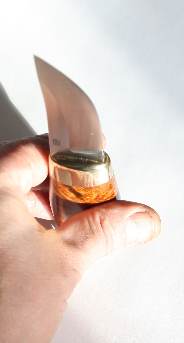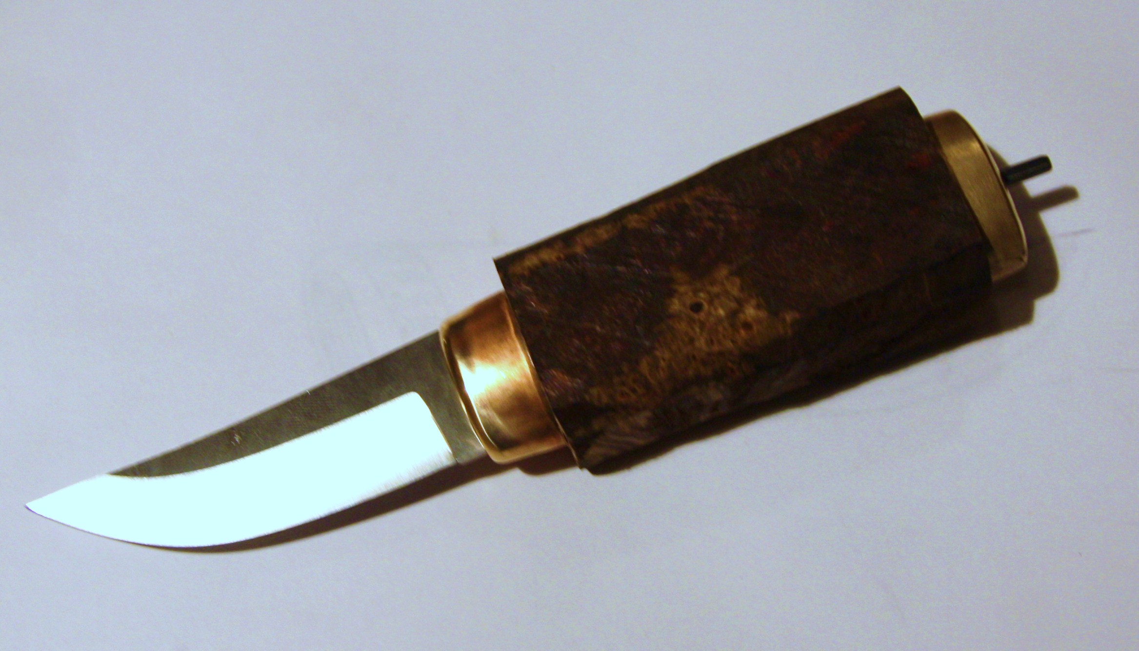 молодецЪ, но к сажелению так делают не все. :wink: поясню суть.....Дело в том что заливку можно выполнить на оковке, и это будет уже как бы больстер, но не ко всякому дереву он подойдёт из за усадок в процессе пропитки, особенности это касается "кучерявых" деревяшек, - капы да сувели, да и карелочка так же.