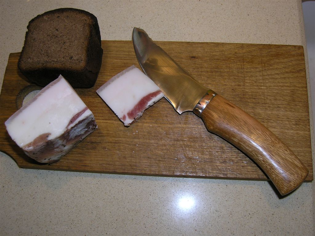 Сало из " Карлберга " , хлеб из пекарни " Ханука " на виноградной закваске ( могу захватить для тебя ). Это я нахально влез в тему Димы , очень уж похожи формы клинков :oops: . Димын , конечно , красивее .