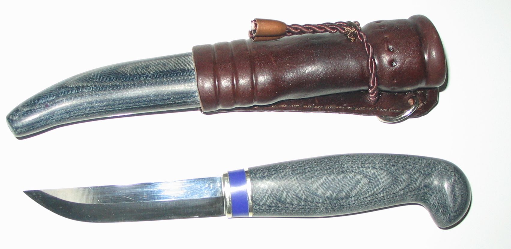 Смастерил ножны. Всё тяга к новому виновата. )) Кожа конечно не саамская. Делал из той какая была. Шовчик "уха" получился кривовато малость...