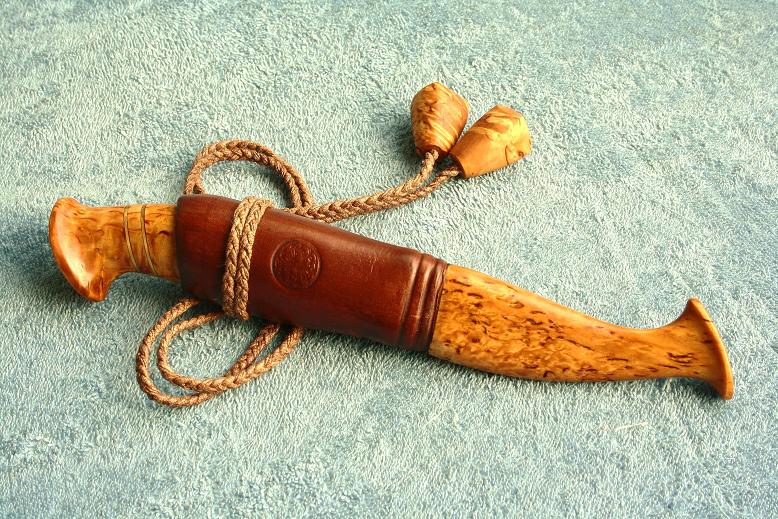 Сподвигла меня на данную работу дружеская ирония форумчан «ЗаДи» на тему выхохулевато-пижонской формой ножен моего "сучка в деревяшке" (называли даже марсианским пятачком). Дело в том, что мне эта форма понравилась, и я решил применить её в следующем ноже. Однако (дабы не нарваться на поток дружеской иронии) было необходимо, каким то образом замотивировать применение таких вычурных форм. Решил уравновесить форму ножен формой рукояти ножа.