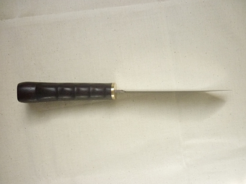 Х12МФ, закалка 58-59 ед, латунь, венге, монтаж сквозной, энтой же венгой и закрытый. Тяжел получился...