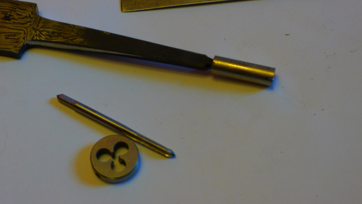 Суть темы в названии, и что хотелось бы сказать, многим пайка и сварка не доступна, и иной раз возникают вопросы относительно удлинения хвостовика, тут как раз подвернулся такой случай, когда паять не хочется, но нужен хвостовик под разборную конструкцию, чем собственно и решил с вами поделиться. ниже фото как это просто и элементарно делается. ---------------------------------------------------- имеется хвостовик с длиной 115мм, но нужен 130мм. подготавливаем его и нарезаем резьбу. Вложение: затем необходима, либо толстостенная трубка, либо муфта, отрезаем нужный размер. Вложение: нарезаем в этой муфте, сквозную внутреннюю резьбу. Вложение: накручиваем полученную муфту на хвостовик, предварительно пропилив в тыльной части шлиц под отвёртку. Вложение: берём винт, или как в данном случае штанга, отпиливаем размер, на который надо удлинить хвостовик. Вложение: вкручиваем его в муфту на хвостовике клинка. Вложение: далее накручиваем стяжку, удлинитель готов. Вложение: Особенности конструкции: При монтаже, сначала надеваются все приборы, кроме тыльника, затем вкручивается муфта через тыльную часть, через пластину тыльника, стягиваем стяжкой всю конструкцию. |