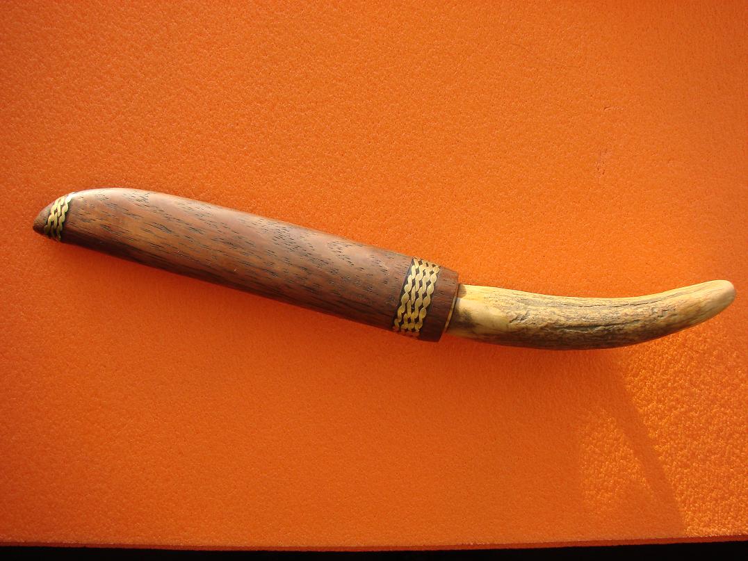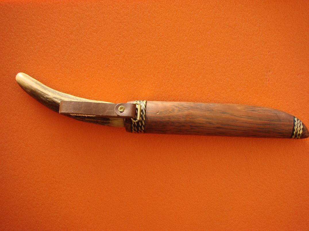 рукоять-красное дерево, рог- решпект Деду Димону, кожа.