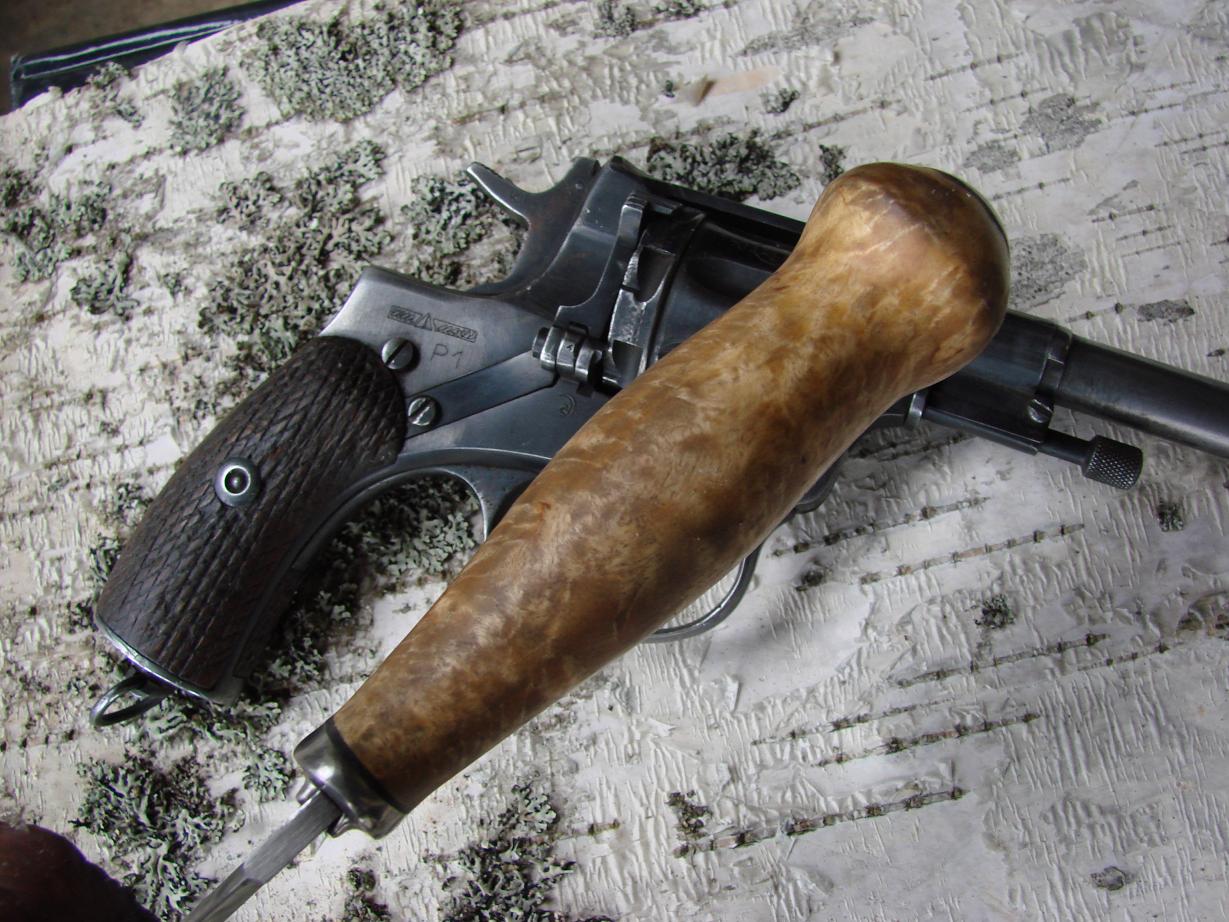 Нож впечатляет не менее, чем наган. Кстати, я недопонял, что такое "Клинок разборный сверху гайка."