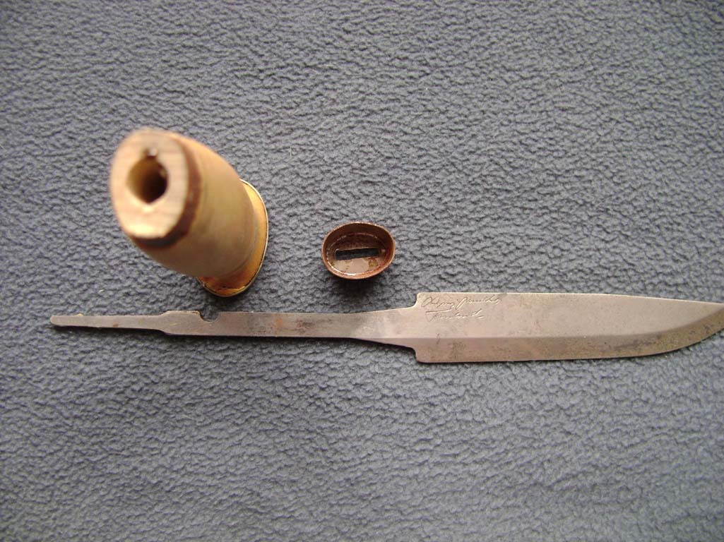 А вот одну деревянную рукоять ножа с всадным монтажом я уже сломал...