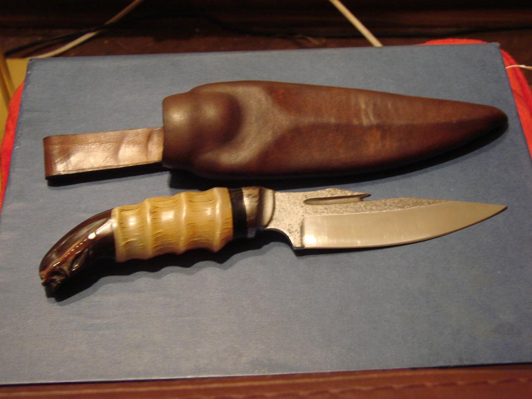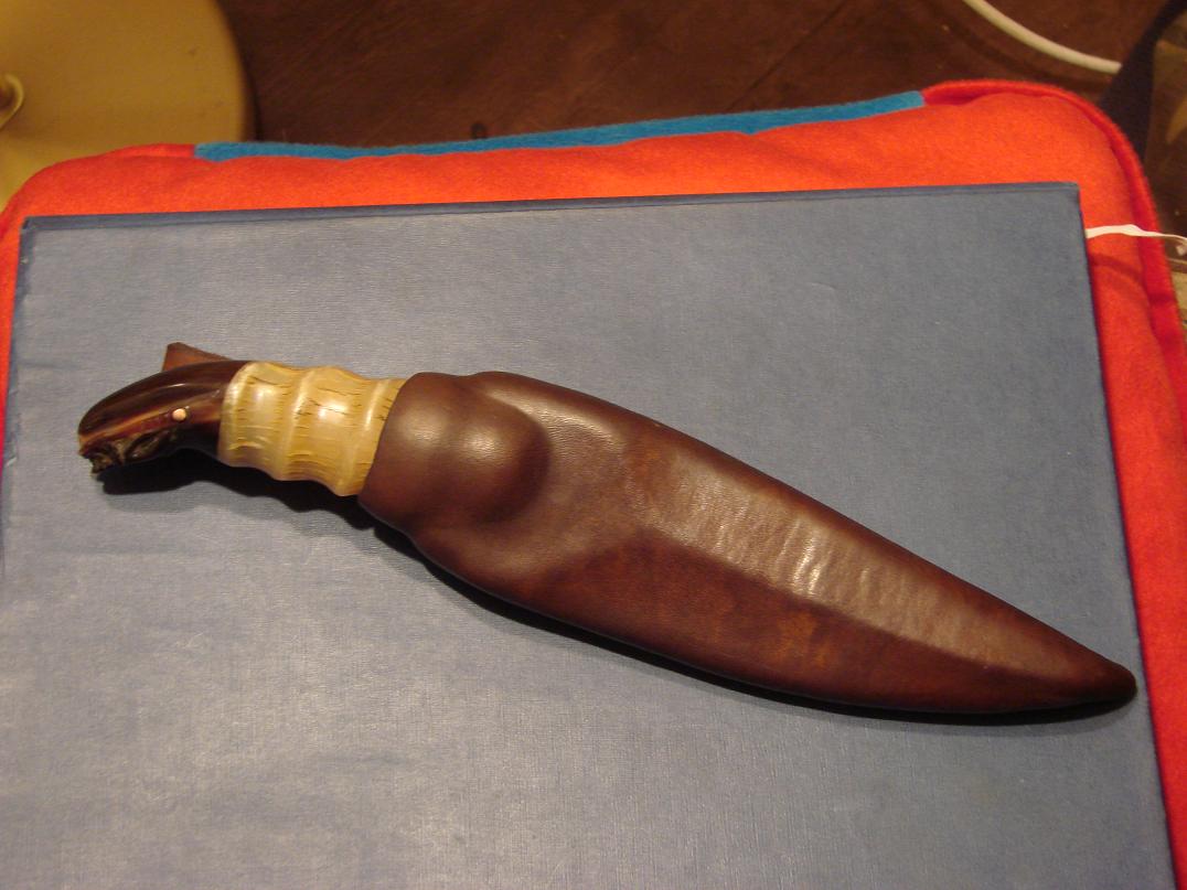 Сложно для такой формы лезвия и ребристой рукоятке ножны придумать :oops: чтобы клинок не прорезал ножны требовалась вставка, эти удобные получились :wink: нож не выпадает и доставать удобно,ну и люблю я чухонские ножны :D