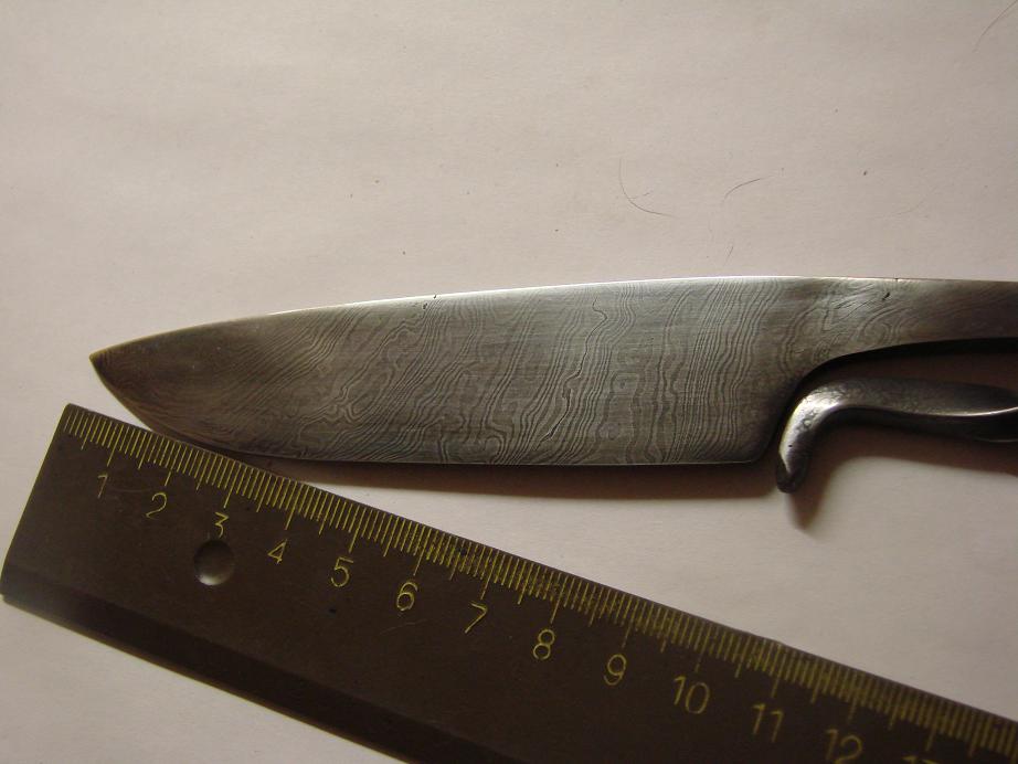 Так ты его видел :D он у горна лежал в виде прутка дамаска разошедшигося по сварке :wink: пол дня,потом шлифовка ,травление