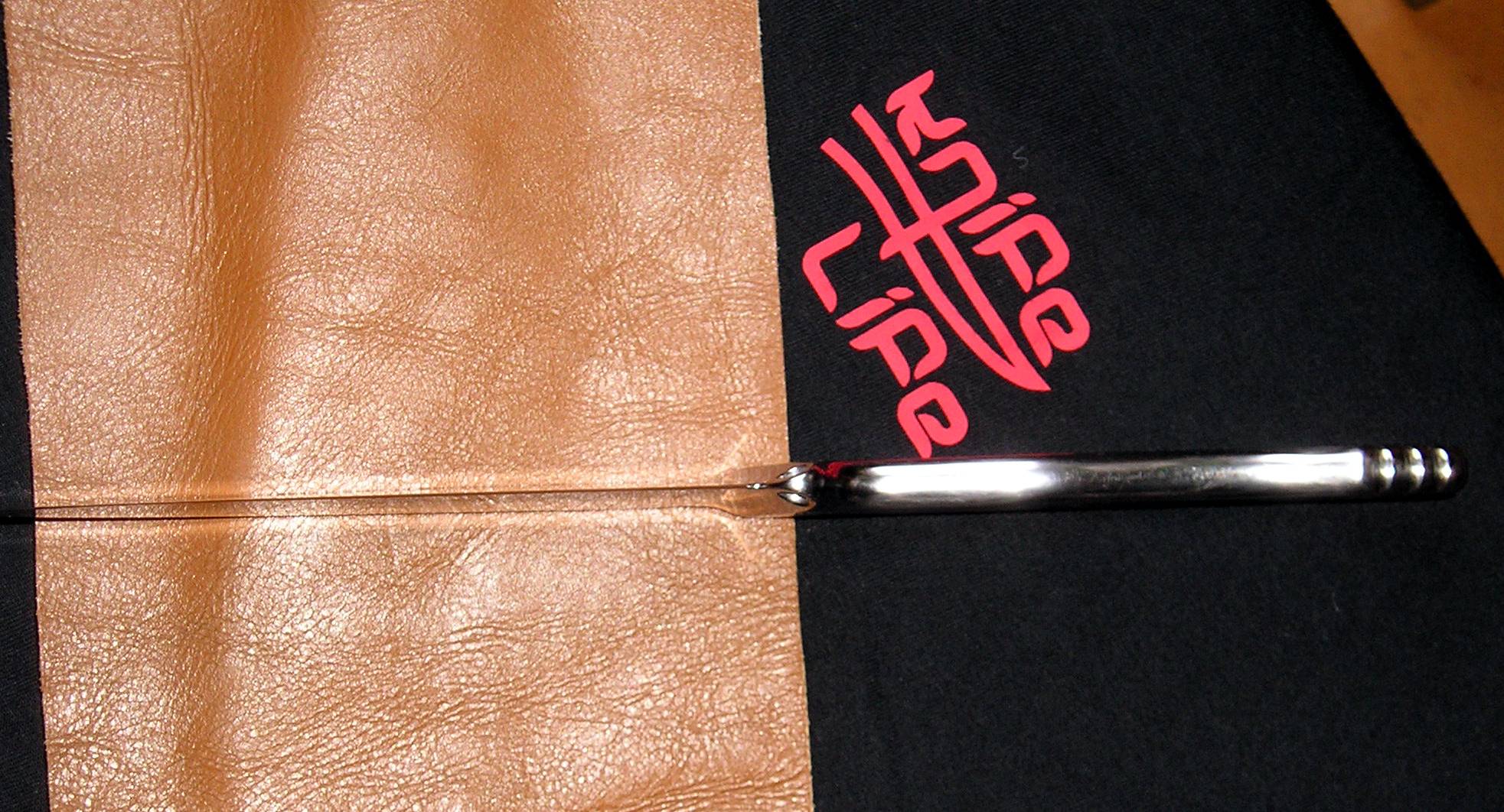 После заточки брил предплечье с отскакиванием волоса, после чего изрезал им двухлитровуб бутылку из-под кваса по спирали лентой шириной от 5 до 10 мм. Бреет, но уже без отскакивания волоса.