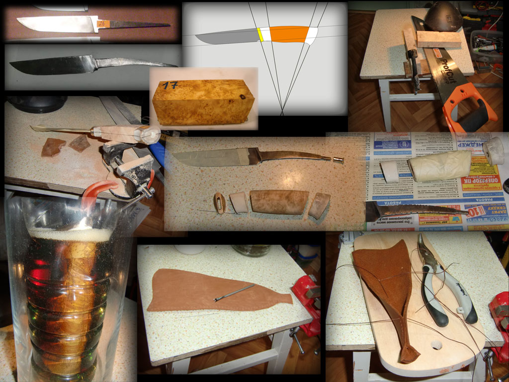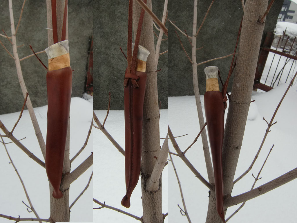 Ножны первые, не ругайтесь. Вернее вторые, первые для этого же ножа по этой же выкройке, но уж очень страшные вышли, в топку.