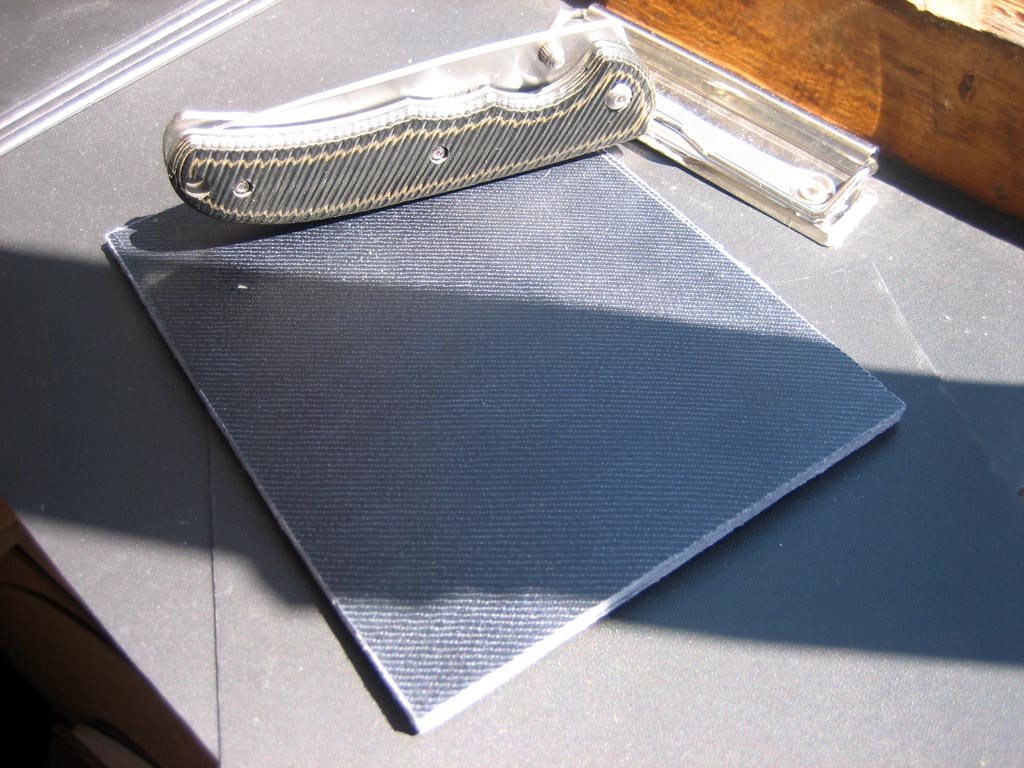 Будет интересно взглянуть,одно время хотелось повторить на микарте текстуру G-10,подкладывался лист мелкорифленого полиуретана.Получилось не так как планировалось,а полиуретан к моему удивлению не удалось отчистить от эпоксидки.