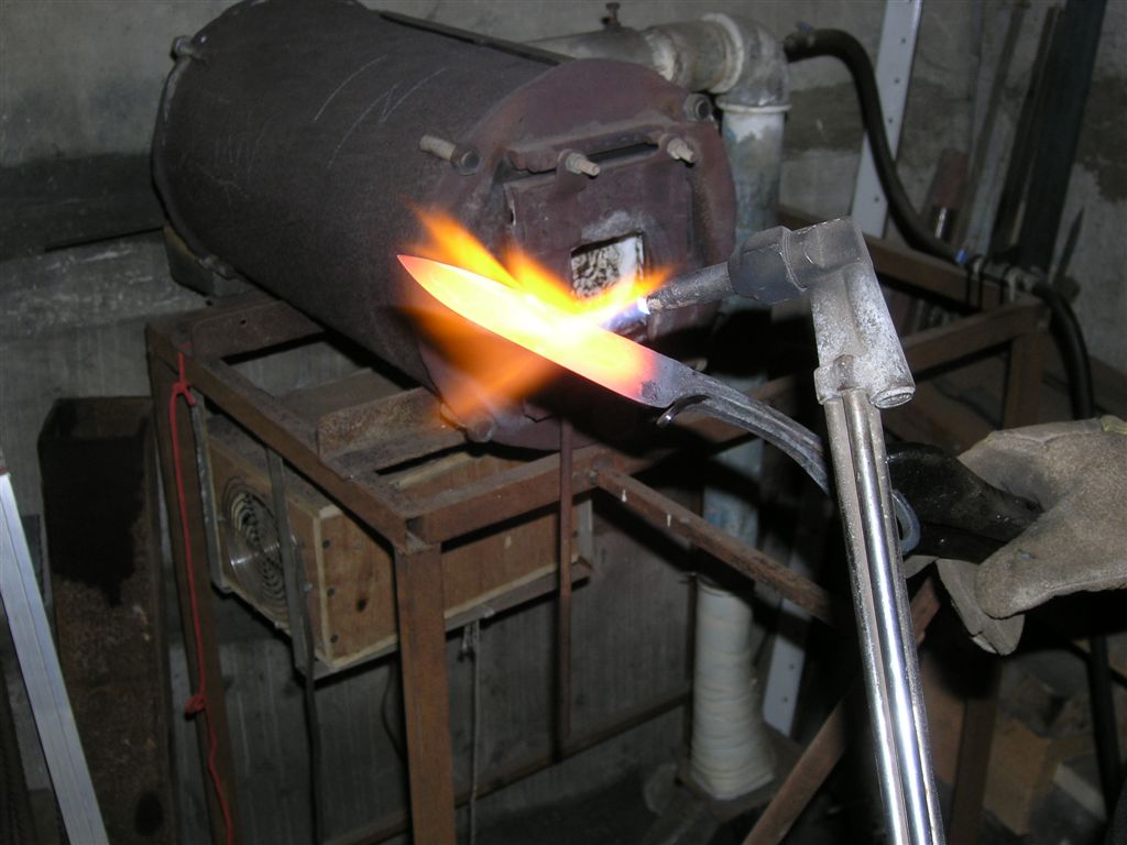 Ладно , пошли ковать . Подшипник прорезали , в печку положили , потом началось: " Не так стоишь , не там и не тем бьеш , греть надо ..." Ну понятно , что Руди все переделал после меня .