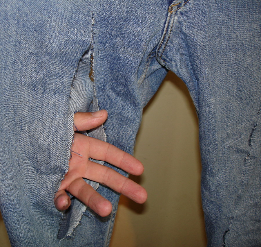 Кстати жена тоже с легкостью как по маслу сделала в штанах приличный надрез.