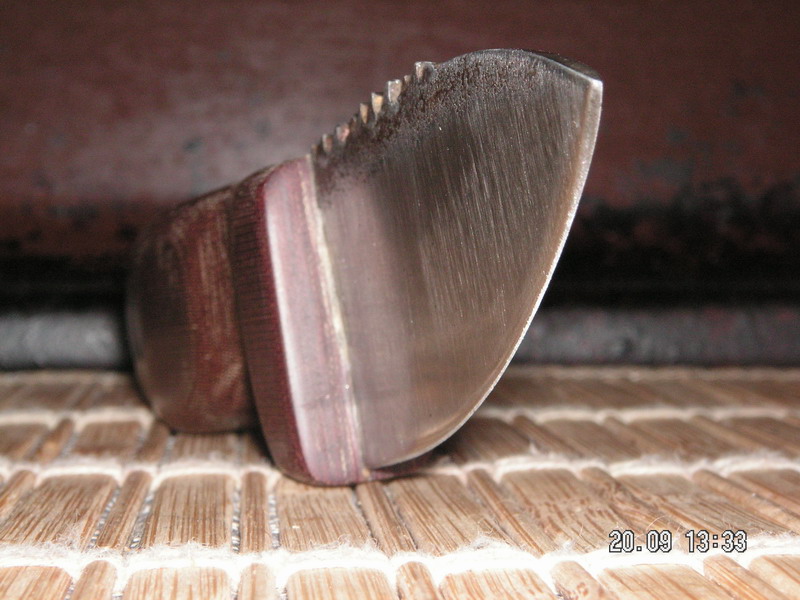Зубья правильно что оставил (прикольно смотрится - "тактически" 8) ), если бы срезал - обух еще на некоторую глубину (в направлении РК) был бы "волной" и при срезании "волн" несколько уменьшится ширина клинка...