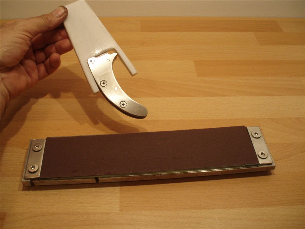 Во- вторых , не теряю надежды , что и Персик тебе понравиться , когда закончу его шлифовать на стекле по методу деда Димона , и пошью крутые ножны . Сегодня сделал вкладыш .