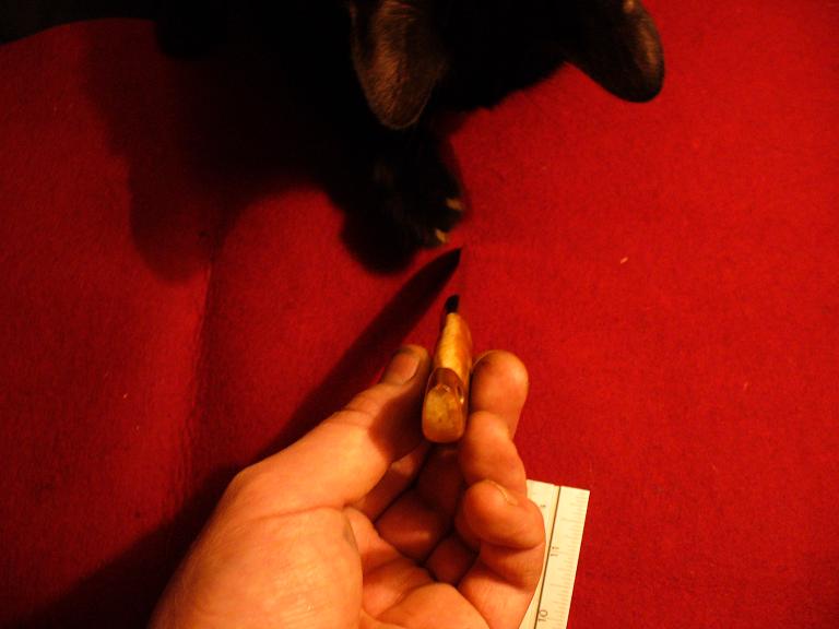 клин-ну понятно,чей то клык(ископаемый),латунь,монтаж всадной,хвост почти до отверстия.....ножен опять же нет,(пока нет настроения) вопрос, чем обработать клык? всмысле покрытия....МНЕНИЯ ....масло не питает..карнаубой натерт...