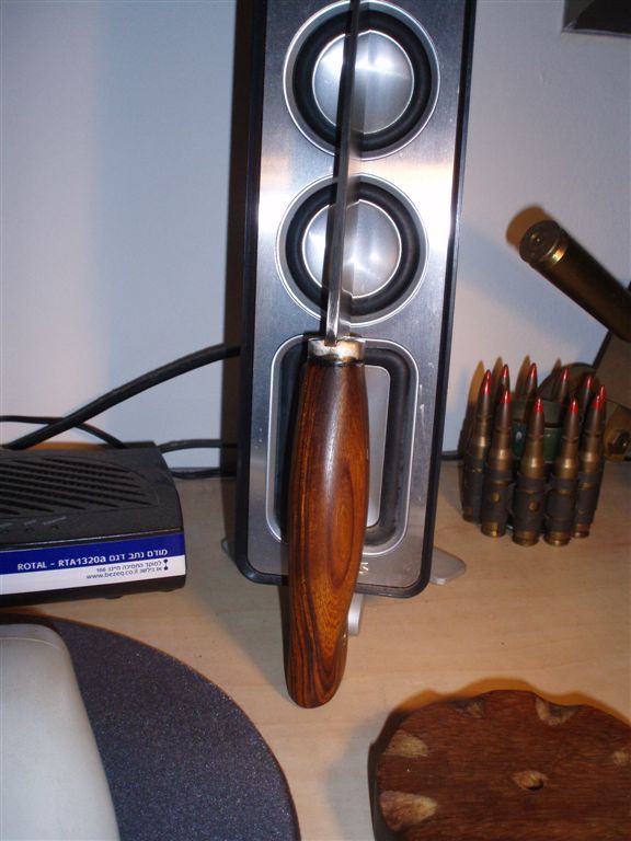 Дерево понравилось, жаль работа ещё не закончена, и получше фоток нет......ладненько подождем.А вот вопрос это посредине заклепка?если да то мне не очень таки нравиться,хотя я и понимаю технологическую обусловленность,наверно на ней всё держится и собрано всё без пременения клеёв....Раскажите нам каким методом собран нож....Думаю не мне одному интересно будет,