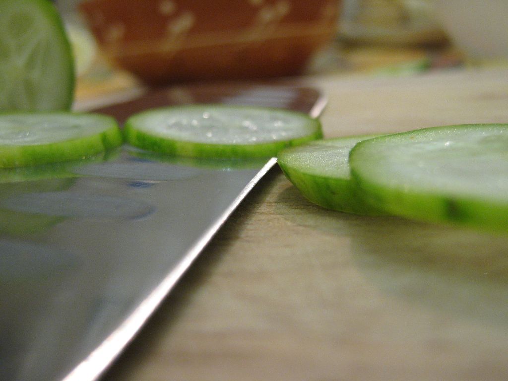 Как я уже писал в теме про кухонники, приобрел я сантоку от "Фискарс". Брал "кота в мешке", т.к. раньше не пользовался ихними кухонниками, но подкупила во-первых цена, во-вторых известное имя. Нож при первичном осмотре сразу понравился: очень удобная и продуманная рукоять из резинополимера, аккуратная обработка клинка и отличная заводская заточка. Клинок 2мм толщиной, с так называемыми "воздушными карманами", спуски прямые от обуха, но подводы конечно потолще, чем на чистокровных сантоку из Японии. И этот факт меня на самом деле порадовал, хоть рез будет и хуже, но проблемм с РК меньше для меня как начинающего сантокувода( или япономана :D ).