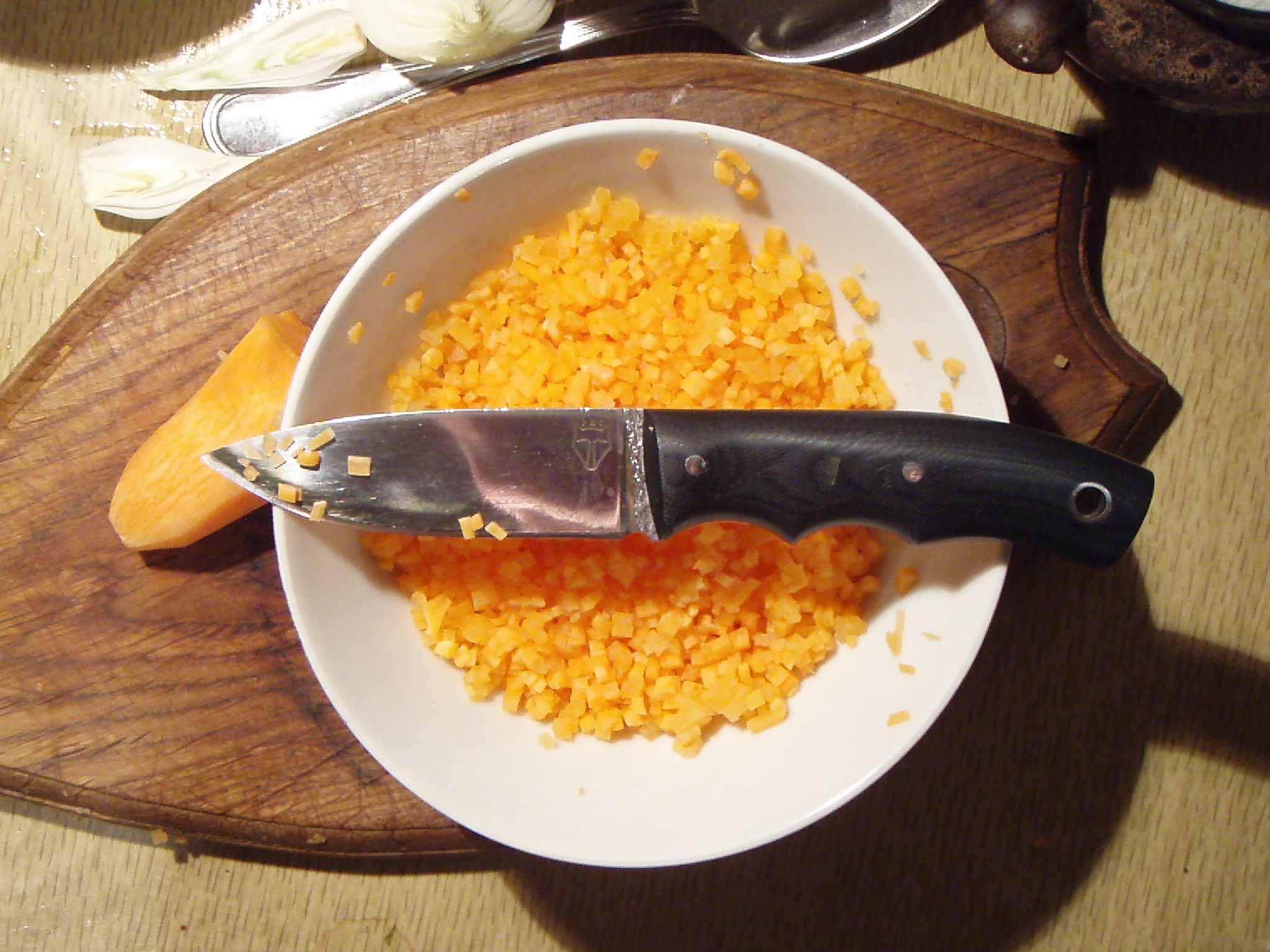 Береттой удобнее всего морковку резать в начале, делать соломку лучше получается 710(управляемость клинком просто изумительная, тут беретта отстает), ну а в конце - обоими ножами резать нормально.