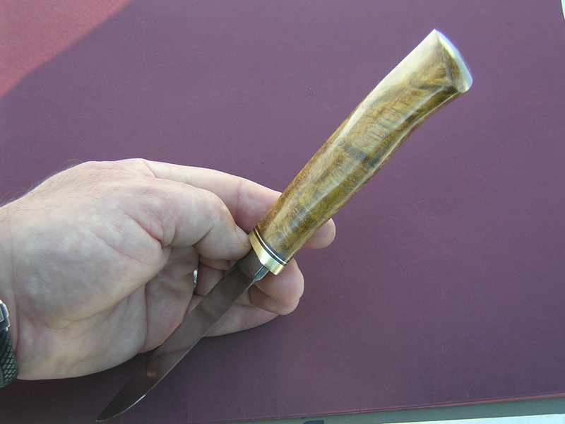 Клинок хорош, дерево выглядит изумительно. Четко все собрано и контуры красивы. А ступенька у больстера - коиу-то и нравится. Тока вот на ступеньке осталась видна канавка.