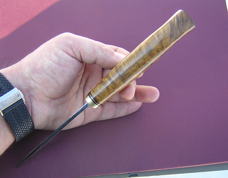 Симпатичный. А кончик клинка не слишком задрали? ИМХО, с прямым обухом лучше бы смотрелся.