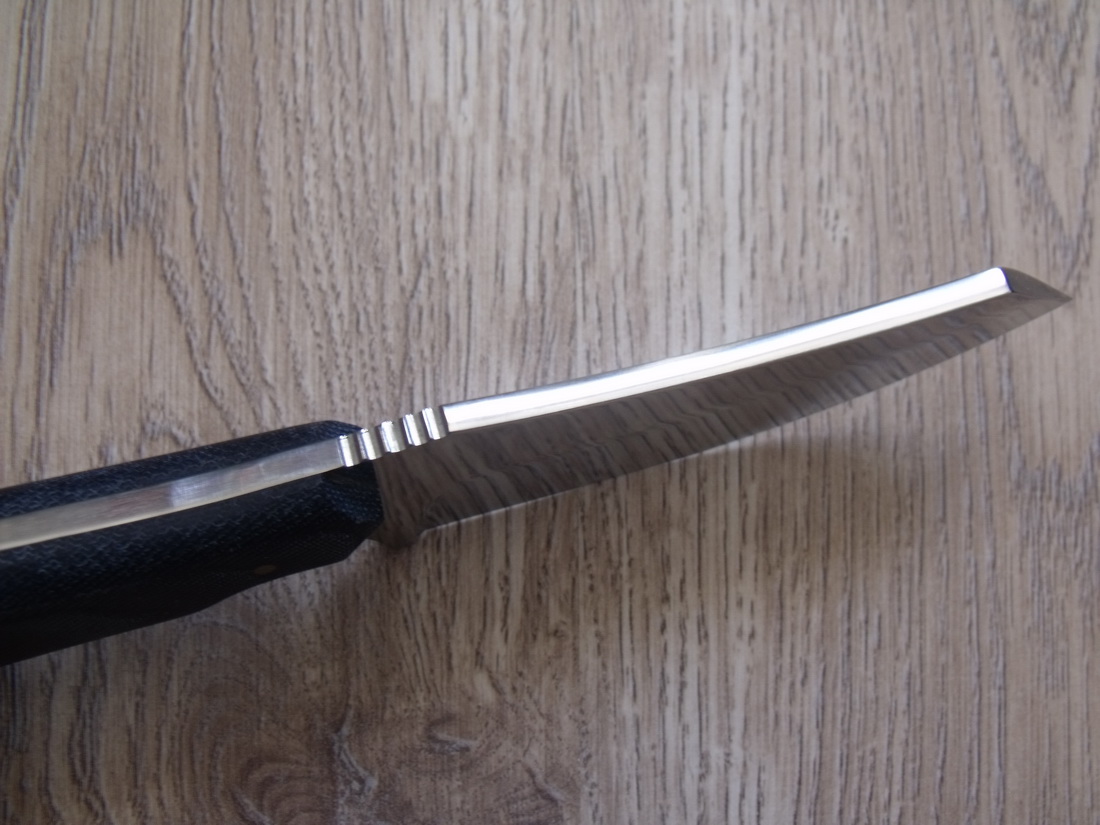 Хороший ножик, гармоничный. Я вот уже джинсы порвал, надо из них теперь микарту клеить. После шлифовки она покрывается чем нибудь?