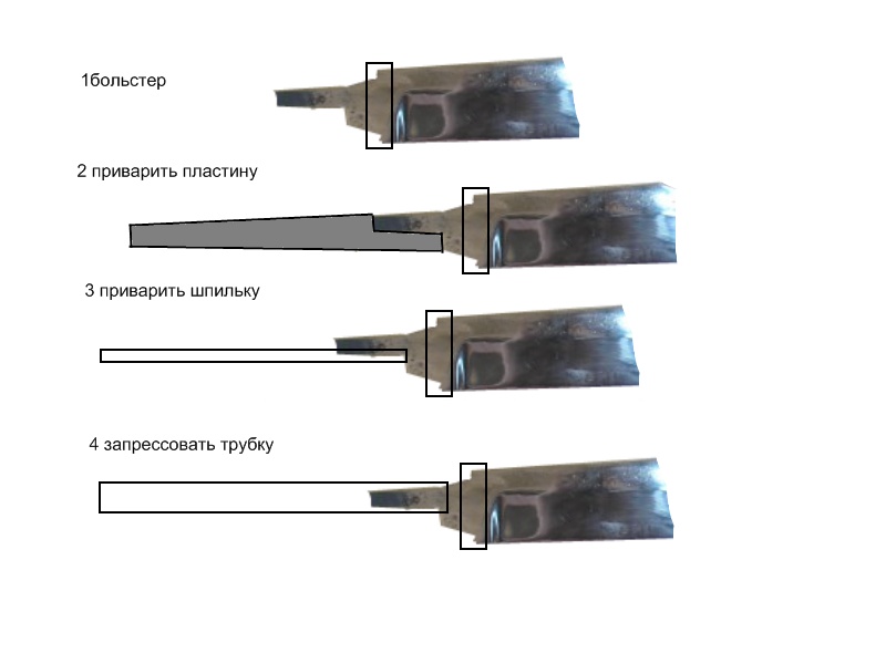Если желание сделать большой нож - сделать больстер, установить, затем запрессовать (можно "на горячую") стальную трубку. Затем каким-нибудь эпоксидным клеем залить.
