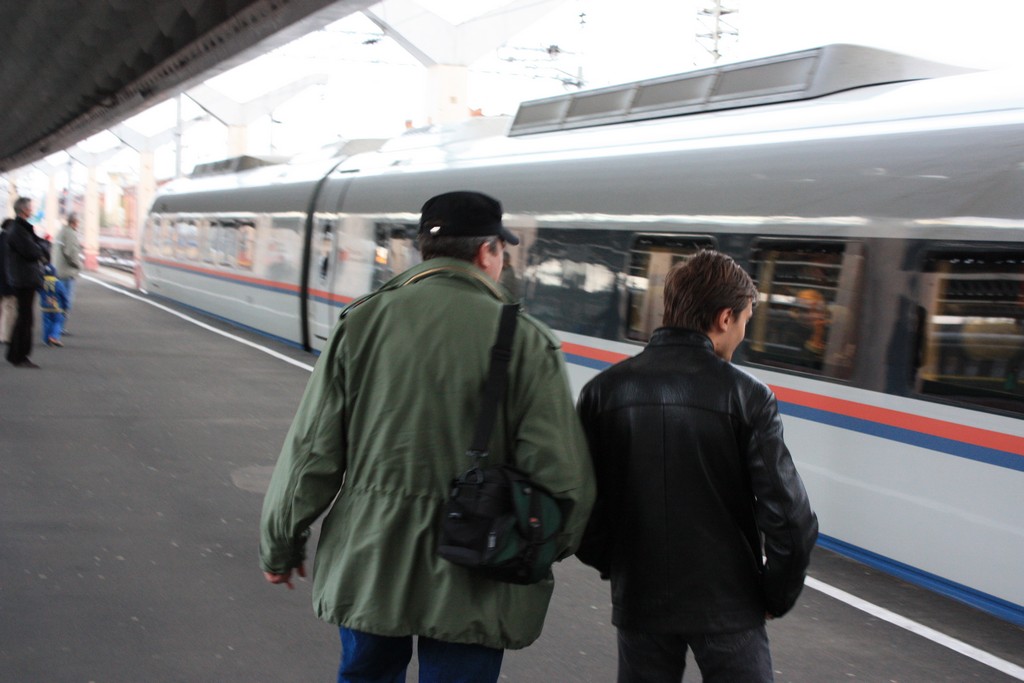 Комментарий к файлу: Подъезжает поезд , это " Сапсан " , названный так в честь одной из моделей ножей фирмы " Асгард " . Возможнось поездки на нем приравнивается к покупке собственного самолета и по карману только очень состоятельным людям .