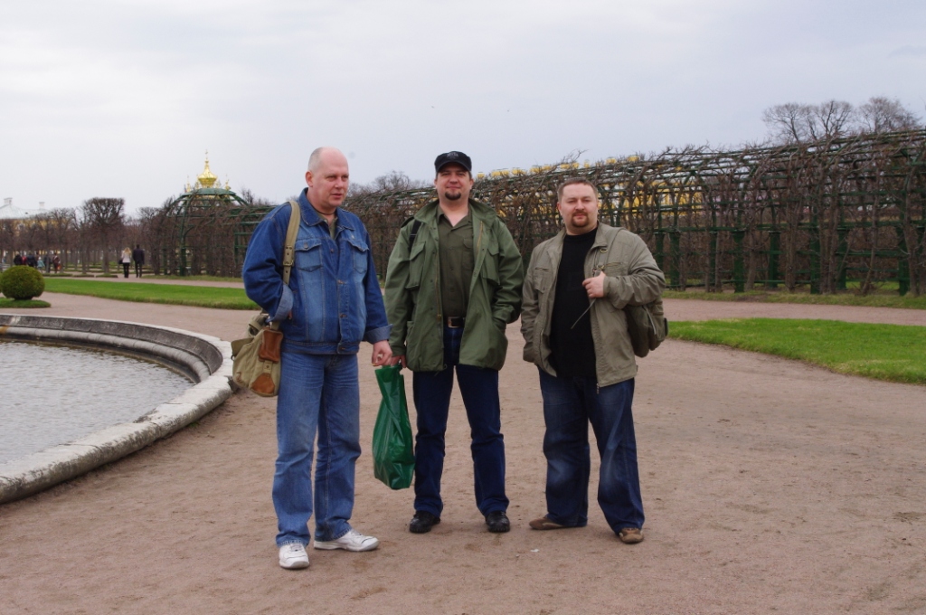День № 2 . Поездка в Петергоф , посещение стройки семиэтажного котеджа , шашлыки , коньяк из придорожного магазина , дождь , грязь , падение ... меня там небыло . Снимки находятся у человека с двойным именем , возможно утеряны навсегда ... :(