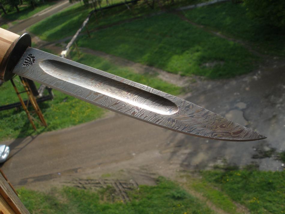 Неплохо смотрится. Я, правда, в якутах не очень понимаю. Больстер как-то необычно смотрится. А вот рукоять, как мне кажется, немного длинновата - миллиметров 15 лишних. Если укоторить - будет самое то. Рисунок на клинке весьма симпатичный. Яблоня на рукояти - это нормально. Мне кажется, у якутов не положено по поводу дерева сильно капризничать - так что, яблоня это должно быть просто супер. :wink: