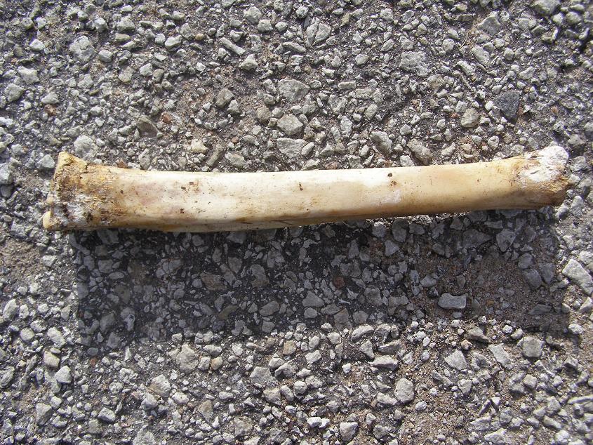 Кость скорей всего пролежала с зимы. Думаю это остатки пиршества волков. Побегал по кругу думал найти череп, но не нашёл. Лет 16-18 тому назад нашёл приблизительно в том районе рог семилетки, висит в прихожей.