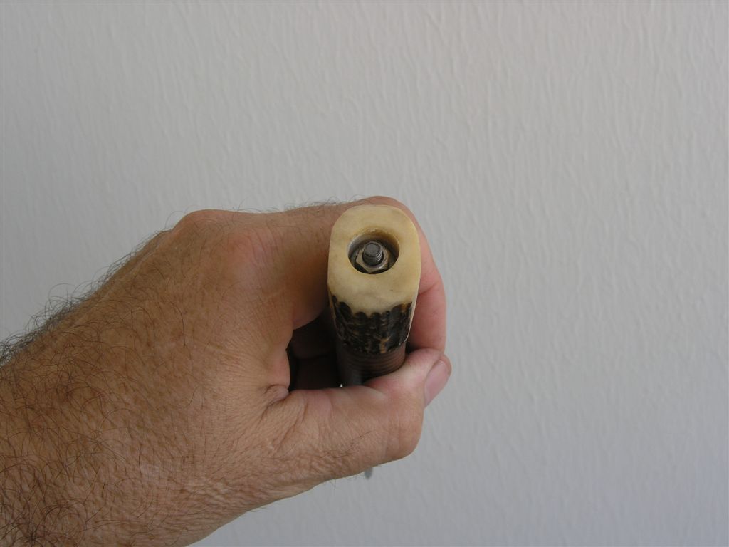 Вот эти моменты, меня смущают, во первых клинок притоплен в гардочку, может быть это эфект фото :wink: , но я вижу как плохое прилегание, потом, стык рога с гардой - щёлка есть, и гардачка выступает над клинком, опять же может фото так показаны, и ещё один момент, тыльная часть косо спилена.....вроде всё, и это всё поправимо. Но живьём виднее должно быть....Извиняйте за занудство :mrgreen: