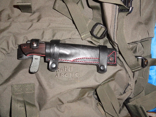 За ножом достаточно ухаживать, а в ножны по желанию проще залить горячего парафина. Можно даже наполнить парафином ножны, погреть феном жены ;)) Нитки главное не спалите :) Ах да, парафин может "пробить" цвет.