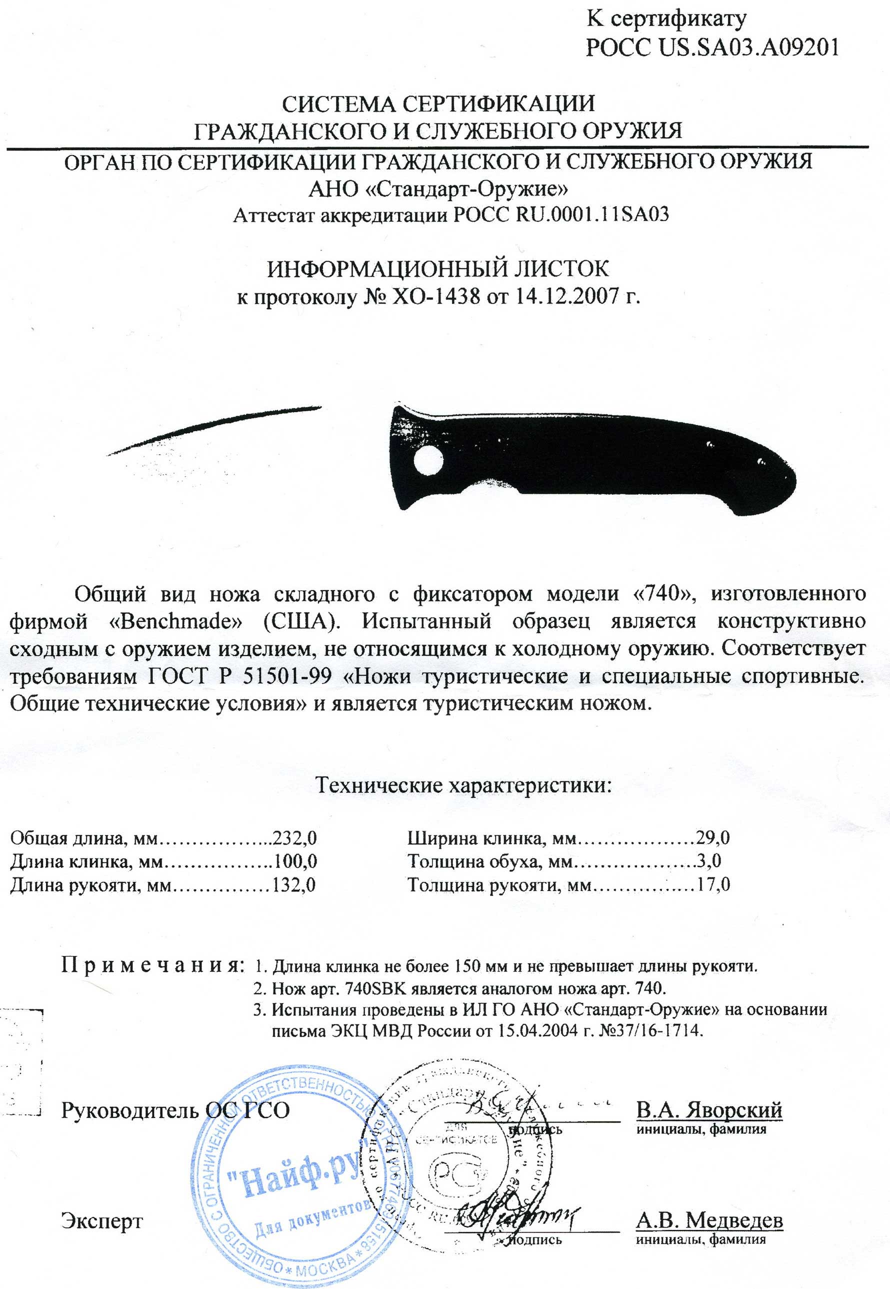 Это ваша формулировка, или ее где-нибудь прочитали? Что за организация проводила сертификацию? Информационный листок от ЭКЦ МВД РФ? Тогда его № и дату.
